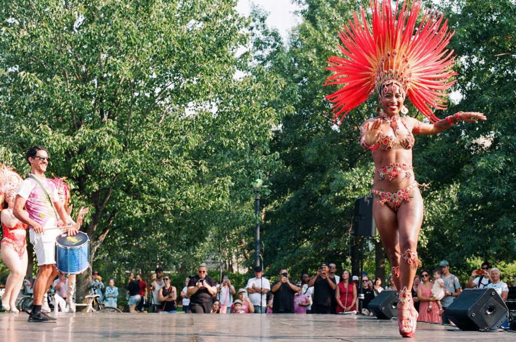 Inès Ouedraogo is a French-Tunisian-Burkinabè dancer who specializes in Brazilian samba. Since the beginning of her career in 2015, Inès has participated in hundreds of performances, from festivals such as Dance for the World Community, Wake Up The Earth, Cambridge Carnival, East Boston Latin Festival, to shows at the Institute of Contemporary Art, the Museum of Fine Arts, to private shows for corporate events, weddings, birthday celebrations, quinceañeras, to cultural events in universities such as Harvard, MIT, Boston University, Emmanuel College, Tufts University, etc. Inès also teaches samba classes with SambaViva from absolute beginner to advanced. Recently, she started teaching online classes in an effort to address the growing demand from the online dance community, especially after the pandemic forced everyone to work and exercise from home. Since 2019, Inès participates in Rio’s Carnival. She was a muse for Vigário Geral Samba School in 2020, and Império da Tijuca in 2022. She will continue as a muse with Império da Tijuca in 2023.